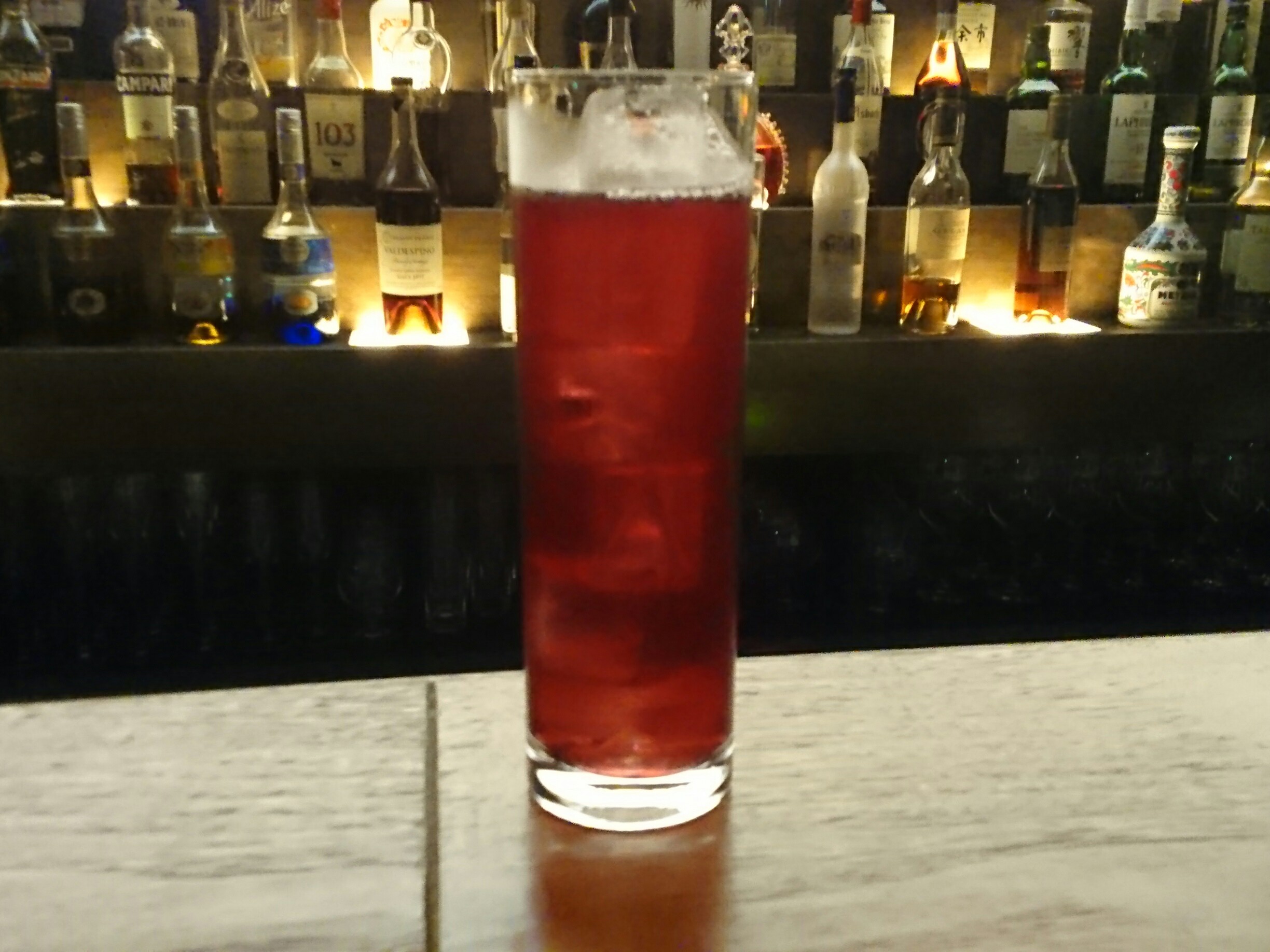 営業前の一杯、今回は、赤ワインとレモンジュースとシュガーシロップと7upのカクテル