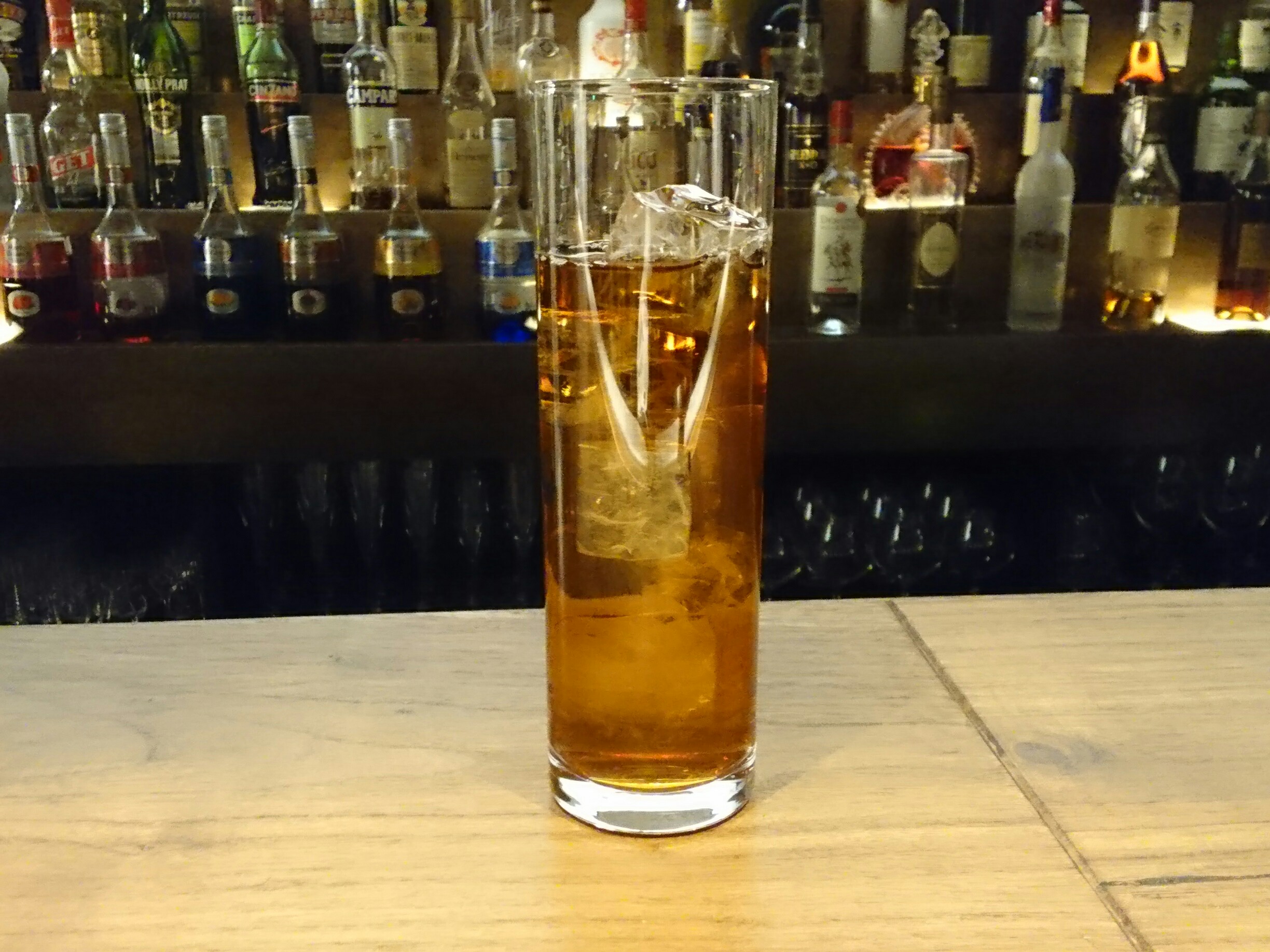営業前の一杯、今回は、アマレットとウーロン茶のカクテル「イタリアン・アイス・ティー」