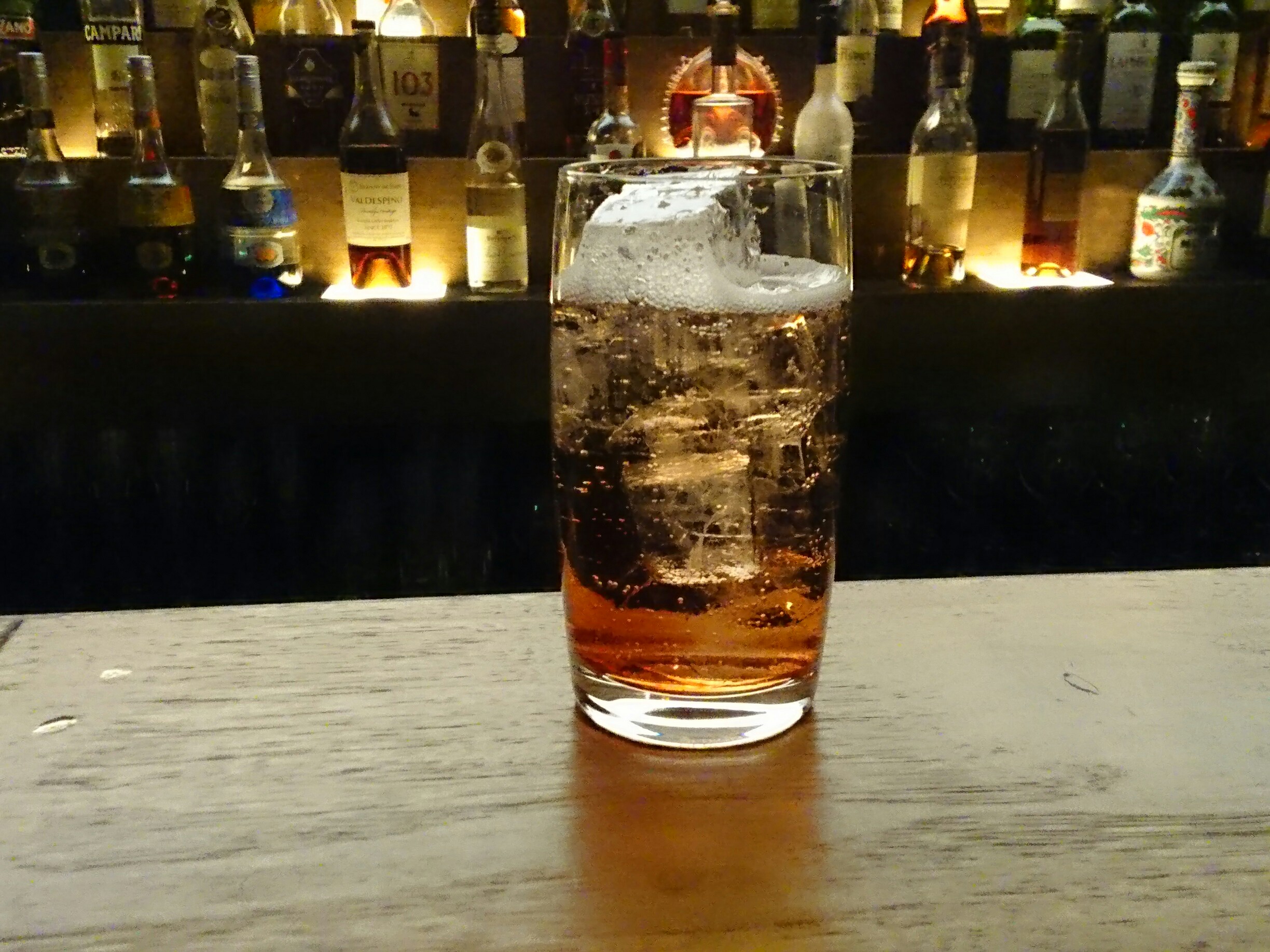 営業前の一杯、今回は、スロージンとレモンジュースとシュガーシロップとソーダの