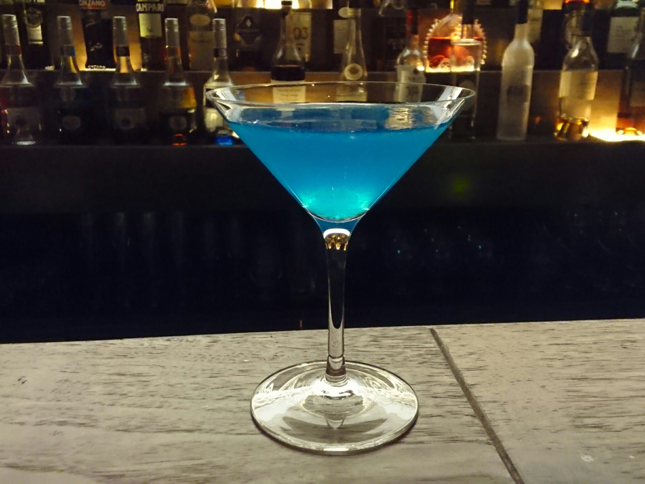 営業前の一杯、今回は、テキーラとブルーキュラソーとレモンジュースのカクテル