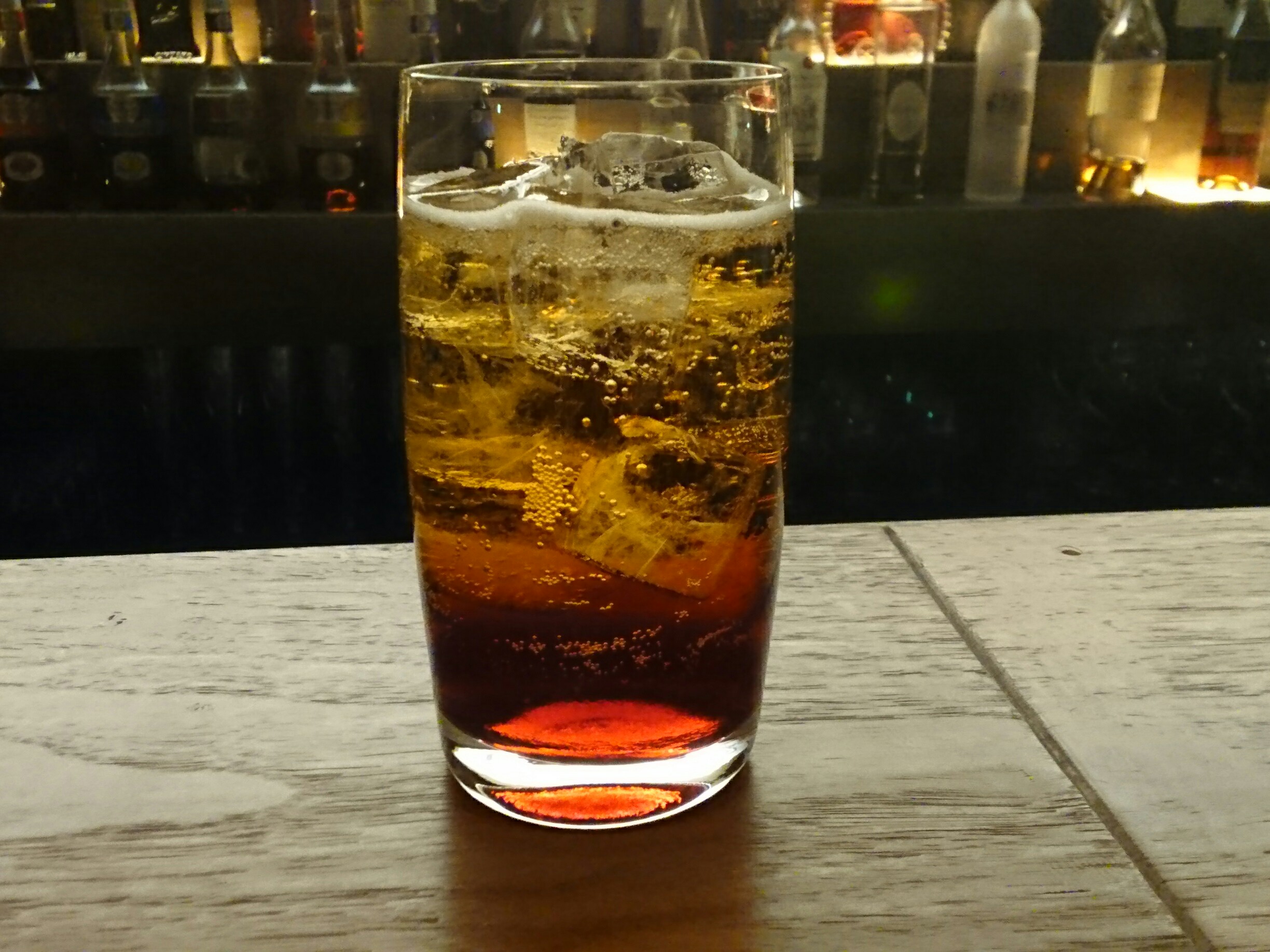営業前の一杯、今回は、カカオリキュールとグレナデンシロップとソーダのカクテル