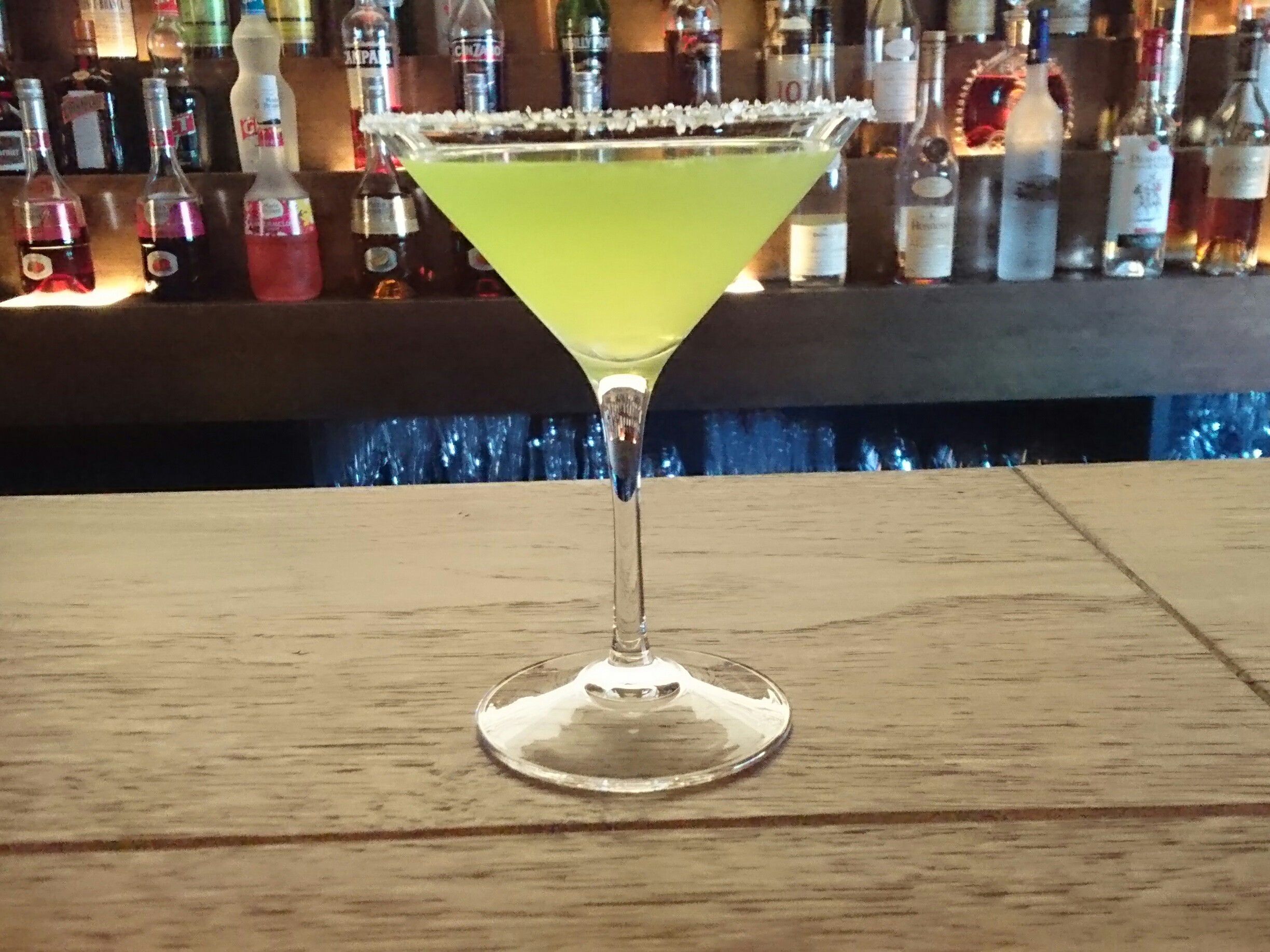 営業前の一杯、今回はメロンのリキュールを使用したカクテル「ミドリマルガリータ」を作ってみました。